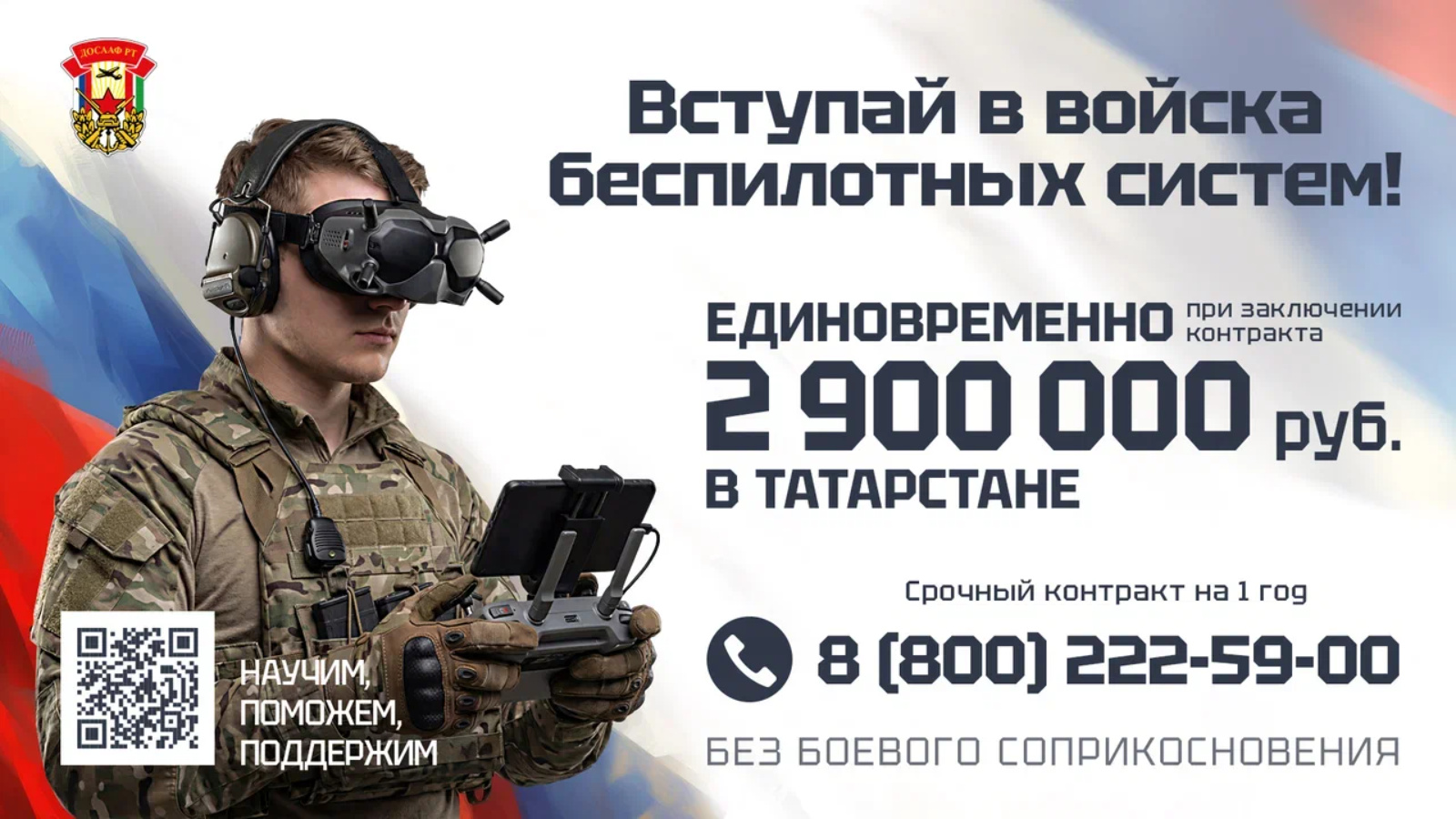 Вступай в войска БПЛА в Татарстане! Единовременно 2.9 млн руб. (высшая в ПФО), от 220 тыс. руб./мес. Срок от 1 года, обучение 2+ мес. на БПЛА. 3000 льгот.